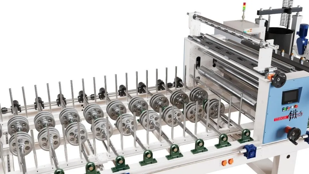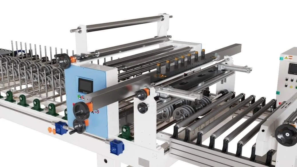 The unwinding unit stably feeds the film, while the laminating press wheels firmly bond the film to the panel.
